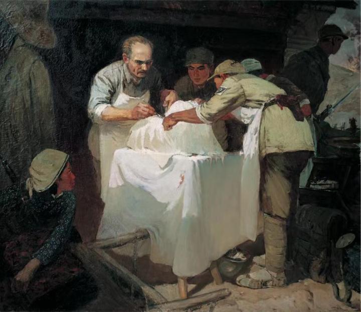 肖锋 宋韧《拂晓》1979年 她与肖峰共同创作的经典油画《白求恩》,曾被选为人教版语文教材中《纪念白求恩》的插图,影响了一代又一代人。作品刻画了白求恩在战地手术时的镇定、果敢、沉着、智慧,是中国美术史上的经典之作。 tttttt tttttttttttt宋韧 肖峰《白求恩》1973-1974年tttttt 宋韧先生一路走好!